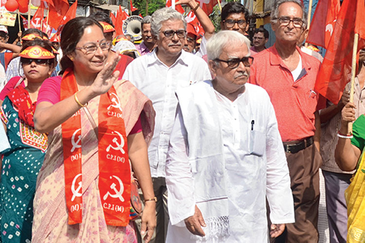 ভবানীপুর এলাকায় প্রচারে দক্ষিণ কলকাতার বাম প্রার্থী নন্দিনী মুখোপাধ্যায়। রয়েছেন বিমান বসু।