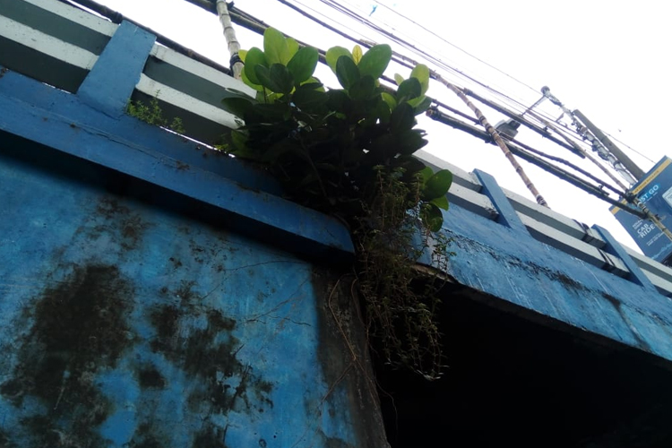 শুধু কি দোকান? সেতুর নীচে মিনিবাসের স্ট্যান্ডও রয়েছে। স্কুলগাড়ি, বাস, অটোর ভিড় লেগেই থাকে। পাশে বালিগঞ্জ স্টেশন, তাই বাড়তি চাপ তো রয়েইছে। বিজন সেতুর স্বাস্থ্যের দিকে তাকালেই আঁতকে উঠতেই হয়।কংক্রিটের ফাঁক দিয়ে উঁকি দিচ্ছে লোহার কাঠামো। সেই কাঠামোর চারপাশে আগাছার শিকড় আষ্টেপৃষ্টে জড়়িয়ে রয়েছে। সেতুর শুরু থেকে শেষ প্রান্তের বিভিন্ন জায়গায় এমনই অবস্থা। গাছগাছালিতে ভর্তি। যেন সেতুর গায়ে কেউ বাগিচা করেছেন! বিভিন্ন জায়গায় চাঙড় খসে পড়ছে।বাপি বললেন, “কিছু দিন আগেই আমার সামনের দোকানদারের মাথায় চাঙড় ভেঙে পড়ে। আর একজনের দোকানের সামনে একই ঘটনা ঘটেছিল। ও সেই সময় ছিল না বলে প্রাণে বেঁচে গিয়েছে।”