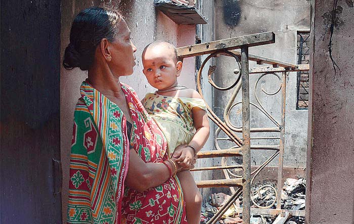 বিছানা, জামাকাপড়, আলমারি, কাঠের দরজা দাউ দাউ করে জ্বলছে। কালো ধোঁয়ায় বেরোনোর দরজাও দেখতে পাচ্ছিলেন না মিনা। অবশেষে তিনি শাড়ির আঁচলে ধৃতিকে জড়িয়ে কোনও মতে বাইরে আসেন। পুলিশ জানায়, সোমবার সকালে ঘটনাটি ঘটেছে মোমিনপুরের বড়ুয়াপাড়া বস্তিতে। ঘটনায় সাতটি ঘর ভস্মীভূত হয়ে গিয়েছে। দমকলের পাঁচটি ইঞ্জিন এক ঘণ্টার চেষ্টায় আগুন নেভায়। কোনও প্রাণহানির ঘটনা ঘটেনি।