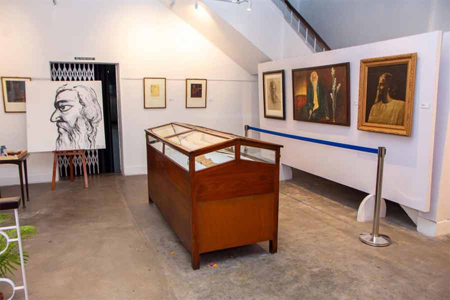 সাড়ে ন’বছর পর স্বমহিমায় অ্যাকাডেমি অব ফাইন আর্টস-এর রবীন্দ্র গ্যালারি (ছবি), বাইশে শ্রাবণে খুলে গেল। এখানে আছে রবীন্দ্রনাথের আঁকা অনেকগুলি ছবি, ওঁর ব্যবহারের সামগ্রী, চিঠিপত্র, ডায়েরি, পুস্তিকা। আছে বাংলার বরেণ্য শিল্পীদের আঁকা রবীন্দ্র-প্রতিকৃতিও: অবনীন্দ্রনাথ ঠাকুর গগনেন্দ্রনাথ ঠাকুর নন্দলাল বসু অসিতকুমার হালদার বিনোদবিহারী মুখোপাধ্যায় সুধীর খাস্তগীর রামকিঙ্কর বেজ গোপাল ঘোষ নীরদ মজুমদার থেকে এম এফ হুসেন ও সত্যজিৎ রায়, সকলের কাজ। প্রদর্শগুলির অনেকাংশই লেডি রাণু মুখোপাধ্যায়ের সংগ্রহের। ২০১৬-তে অ্যাকাডেমি-সংগ্রহের প্রায় দু’শোটি ছবি কেন্দ্রীয় সংস্কৃতি মন্ত্রকের অর্থানুকূল্যে ‘রেস্টোরেশন’-এর জন্য পাঠানো হয় লখনউয়ের ন্যাশনাল রিসার্চ ল্যাবরেটরি ফর কনজ়ার্ভেশন-এ, তারই বাছাই কতকগুলি দেখা যাচ্ছে এখন। উদ্বোধনে ছিলেন শিল্পী যোগেন চৌধুরী-সহ বিশিষ্টজন; খোলা থাকবে সপ্তাহের মঙ্গলবার থেকে রবিবার, বেলা ১২টা থেকে সন্ধ্যা ৬টা পর্যন্ত।