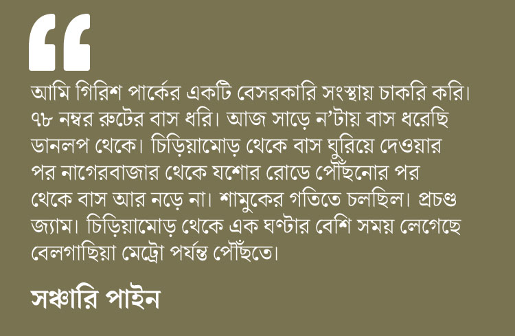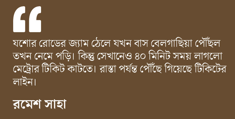সোমবার মারাত্মক ওই যানজট থেকে বাঁচতে বহু বাসযাত্রীই নেমে পড়েন দমদম এবং বেলগাছিয়া মেট্রো স্টেশনে। তাঁদের অধিকাংশই নিয়মিত মেট্রো যাত্রী না হওয়ায় সবাই টিকিট কাটতে যান কাউন্টারে। বাড়তি ভিড়ের চাপে মেট্রোর টিকিট কাউন্টারের ভিড় পৌঁছে যায় রাস্তায়।