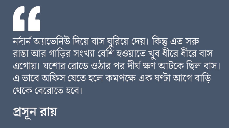 রবিবার দিন যদিও ওই বিকল্প রুটে মসৃণ ভাবে বাস চলাচল করে। কিন্তু, পরিস্থিতি জটিল আকার ধারণ করে সোমবার সকাল থেকেই। বিটি রোড ধরে চলাচল করা শ্যামবাজারগামী ৫০টি রুটের বাসকে চিড়িয়ামোড় থেকে দমদম রোডে ঘুরিয়ে দেওয়া শুরু হতেই ধীরে ধীরে মন্থর হতে থাকে যান চলাচলের গতি। কারণ, সকালে দমদম রোডে প্রচুর পরিমাণে অটো ও রিকশা চলে। সেই সঙ্গে রাস্তার ধারে বসে অনেক অস্থায়ী বাজার। ফলে, অতিরিক্ত গাড়ির চাপ পড়তেই লম্বা জ্যাম শুরু হয়ে যায় দমদম রোডে।
