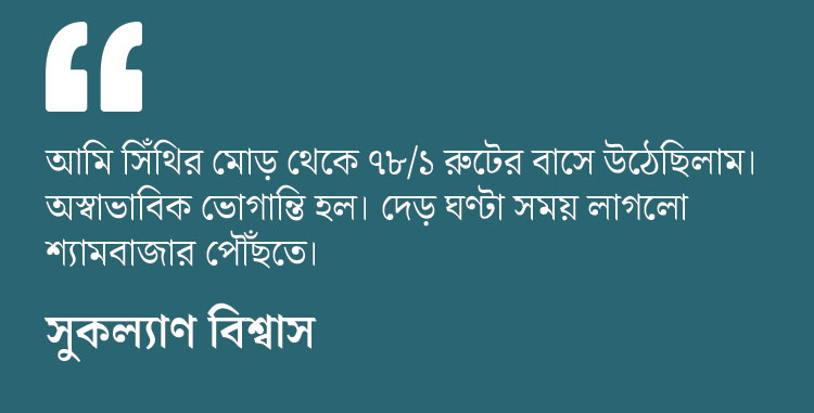 টালা সেতুর উপর দিয়ে বাস চলাচল বন্ধ হওয়ার পর সপ্তাহের প্রথম দিনেই চূড়ান্ত ভোগান্তির শিকার হলেন উত্তর কলকাতা এবং শহরতলির অসংখ্য নিত্যযাত্রী। সোমবার ট্রাফিক ব্যাবস্থা কার্যত থমকে গেল উত্তর কলকাতা এবং সংলগ্ন অঞ্চলের বিস্তীর্ণ অংশে। পরিস্থিতি যে এমন হতে পারে, তা আশঙ্কাই করেছিল পুলিশ। কিন্তু, চেষ্টা করেও পরিস্থিতি স্বাভাবিক করতে ব্যর্থ হল তারা। ভগ্ন স্বাস্থ্যের কারণে রবিবার থেকে বিটি রোডের উপর ওই সেতুতে ছোট গাড়ি ছাড়া সমস্ত কিছু চলাচল নিষিদ্ধ করা হয়।