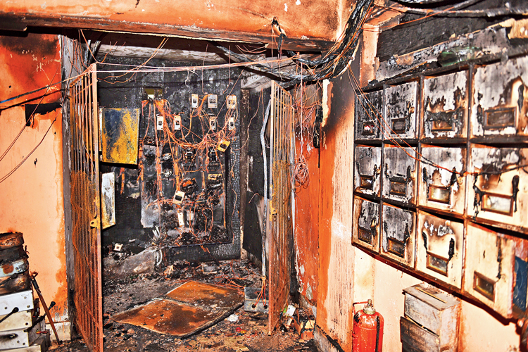 অঘটন: সম্পূর্ণ পুড়ে গিয়েছে ওই আবাসনের মিটার বক্স। ছবি: বিশ্বনাথ বণিক