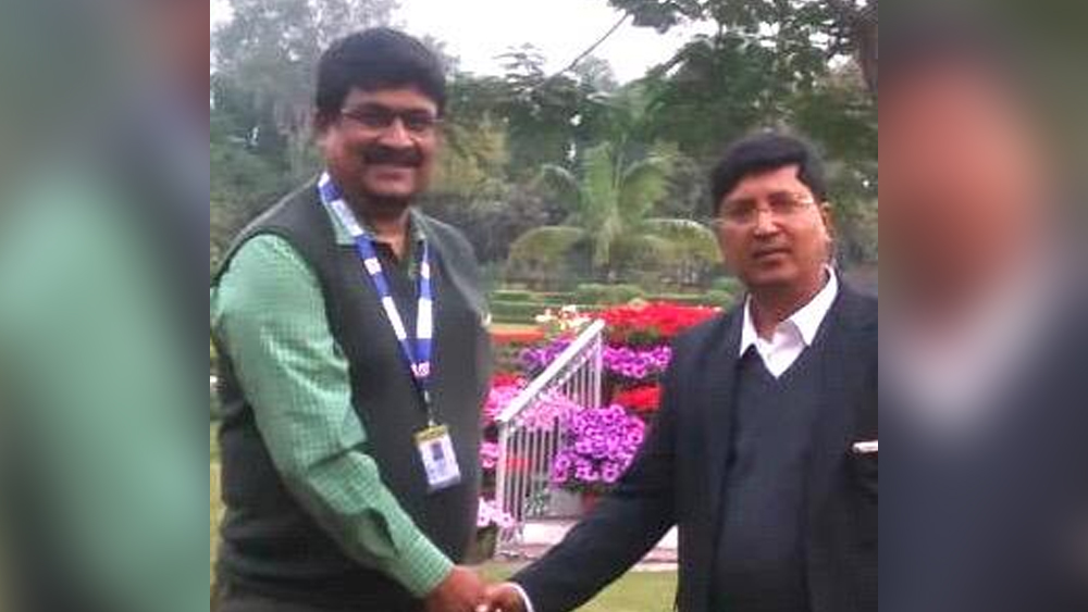 মেট্রো রেলের সিনিয়র ট্রান্সপোর্টেশন ম্যানেজার কৌশিক মিত্র জরিমানার টাকা তুলে দিচ্ছেন জ্যোতির্বিজ্ঞানী সন্দীপ চক্রবর্তীর হাতে। —নিজস্ব চিত্র।