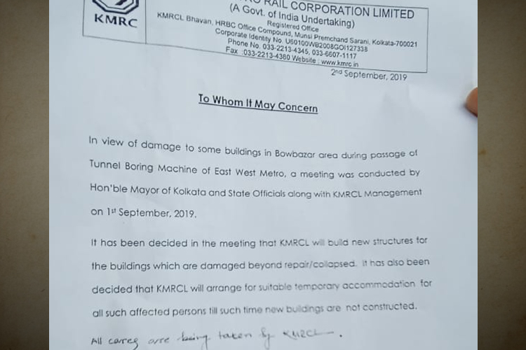 এই কাটা ঘায়ের মধ্যেই নুনের ছিঁটে দিয়েছেন মেট্রো কর্তৃপক্ষ। ঘটনা শুরু হওয়ার ২৪ ঘণ্টা পর এ দিন দুপুরে কলকাতা মেট্রো রেল কর্পোরেশন লিমিটেড (কেএমআরসিএল) চিঠি দিয়ে জানিয়েছে, ক্ষতিগ্রস্ত পরিবারগুলির থাকার বন্দোবস্ত করা হচ্ছে। যে বাড়িগুলির ক্ষতি হয়েছে, তা সারিয়ে দেওয়া হবে। যেগুলি ভেঙে পড়েছে, তৈরি করে দেওয়া হবে সেগুলিও। কিন্তু ক্ষতিগ্রস্তদের বেশির ভাগেরই অভিযোগ, তাঁদেরকে মূল চিঠির একটা ফোটোকপি দেওয়া হয়েছে। তাতে লেখা নেই, কত দিনের মধ্যে বাড়ি মেরামত করে দেওয়া হবে বা ভেঙে পড়া বাড়ি তৈরি করে দেওয়া হবে। নীল কমল দাস নামে এক ব্যক্তি বলেন, ‘‘একে কাটা ঘায়ে নুনের ছিঁটে ছাড়া আর কী বলব বলুন তো! ফোটোকপি করা এই কাগজের কী মূল্য আছে? আর যদি ধরেনিই ওই কাগজ সত্যি, তা হলে কোনও কিছুরই তো স্পষ্ট ব্যাখ্যা নেই সেখানে। আমাদের অবস্থার কোনও পরিবর্তনের আশা ওই চিঠিতে অন্তত দেখতে পাচ্ছি না।’’