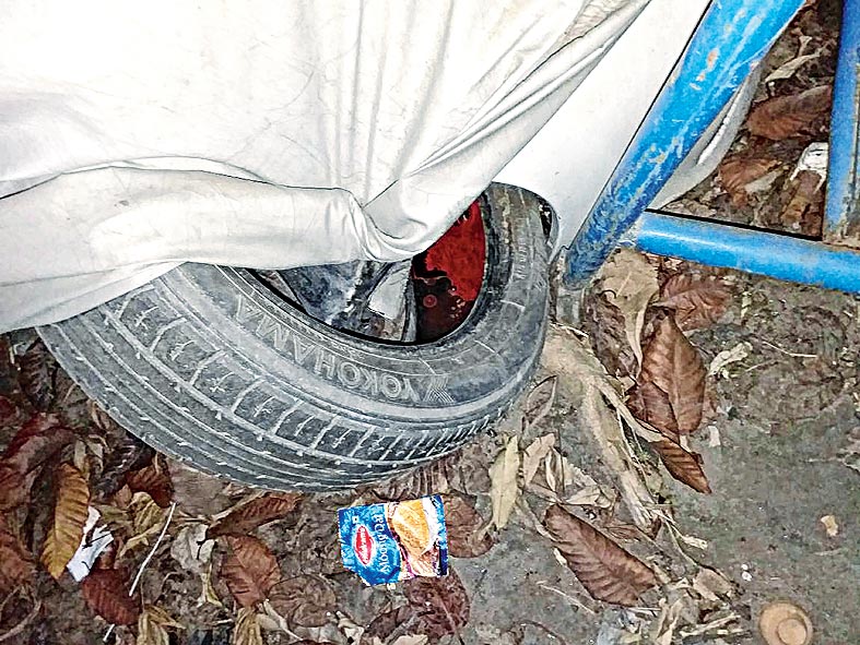 পুরসভার ওই অফিসার জানান, চাকা বেঁকে রয়েছে। টায়ারও বাটির মতো হয়ে গিয়েছে। গত কয়েক দিনের বৃষ্টিতে সেখানে জল জমে মশার বংশবৃদ্ধি হয়েছে। তবে ওই লার্ভা এডিস না অ্যানোফিলিস মশার তা জানতে পারেনি পুরসভার টিম। ওই দলের এক সদস্যের কথায়, ‘‘বলব কী করে? পরীক্ষা করার সুযোগই তো মেলেনি। পুলিশের হুঁশিয়ারি, ওখানে হাত দেওয়া যাবে না। তাই ওভাবেই রেখে আসতে হয়েছে।’’