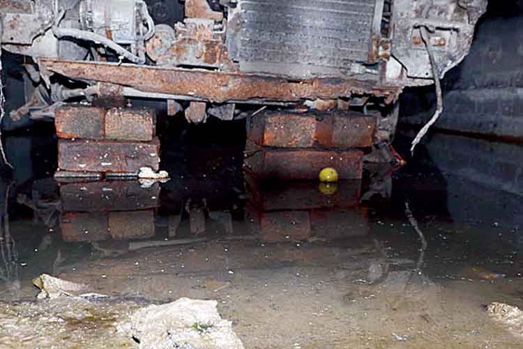 বাঙুরের একটি বাড়ির গ্যারাজে জমে আছে জল। ছবি: স্নেহাশিস ভট্টাচার্য
