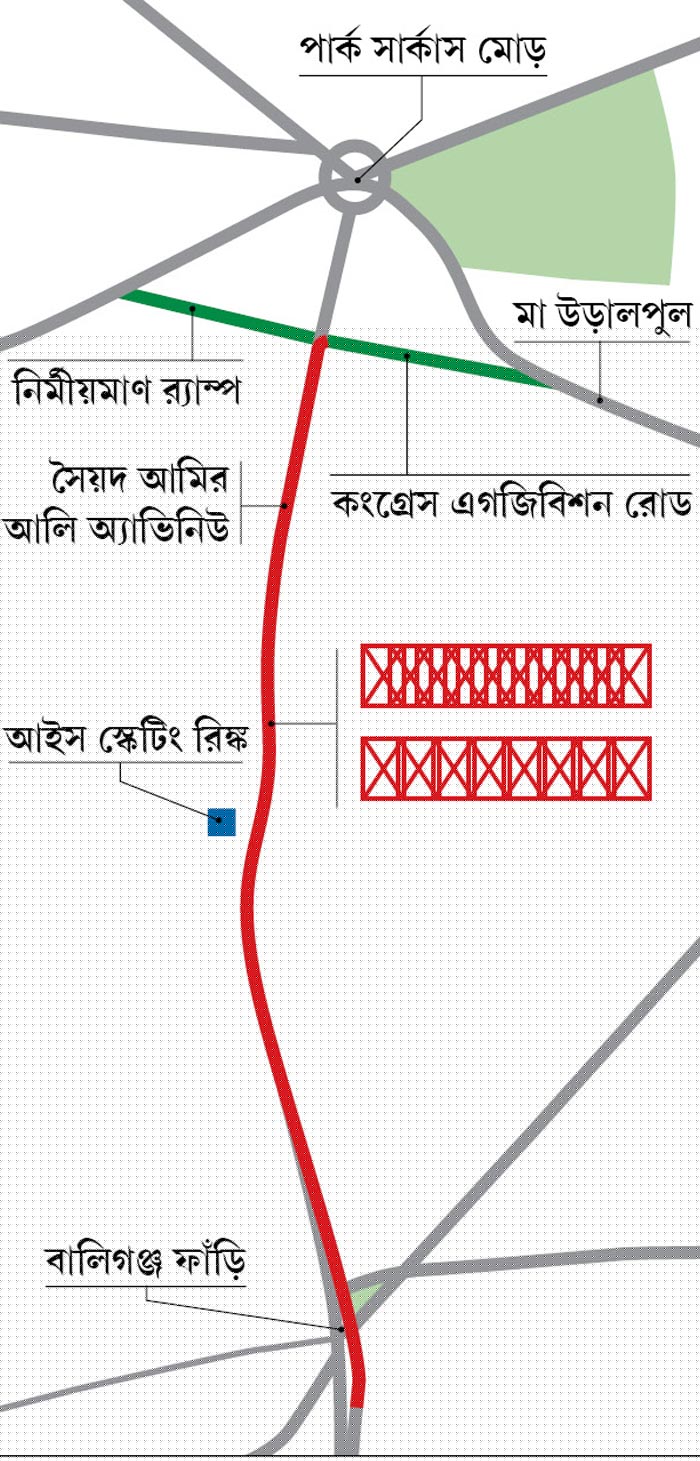 পুলিশের একাংশ জানিয়েছে, বর্তমানে ইএম বাইপাস থেকে আসা গাড়িগুলিকে মা উড়ালপুল থেকে পার্ক সার্কাস সাত মাথার মোড়ে নেমে বাঁ দিকে ঘুরে সৈয়দ আমির আলি অ্যাভিনিউ ধরে বালিগঞ্জ ফাঁড়িতে যেতে হয়। অন্য গাড়িগুলি মা উড়ালপুল থেকে পার্ক সার্কাস মোড়ে নেমে সোজা এ জে সি বসু রোড উড়ালপুল ধরে। মা উড়ালপুলের সঙ্গে এ জে সি বসু রোড উড়ালপুল সংযোগকারী একটি র্যাম্পের কাজ চলছে। যা সামনের বছরের মাঝামাঝি চালু হওয়ার কথা। ট্র্যাফিকের সঙ্গে যুক্ত পুলিশকর্তাদের দাবি, ওই র্যাম্প চালু হলে পার্ক সার্কাস মোড়ে যানজট কিছুটা কমলেও ভোগান্তির আশঙ্কা থেকেই যাচ্ছে। সেই সঙ্গে সব গাড়ি এ জে সি বসু রোড উড়ালপুল ধরে ডিএল খান রোডের সংযোগস্থলে নামলে ওই এলাকায় অবস্থা ভয়াবহ হয়ে উঠতে পারে। তাই বালিগঞ্জ ফাঁড়ি পর্যন্ত একটি একমুখী উড়ালপুল হলে দু’দিকের গাড়ির চাপই কিছুটা কমবে বলে দাবি কর্তাদের। সেই সঙ্গে আইস স্কেটিং রিঙ্ক এলাকা এবং বালিগঞ্জ ফাঁড়ির যানজটও হ্রাস পাবে বলে মনে করছে পুলিশ।