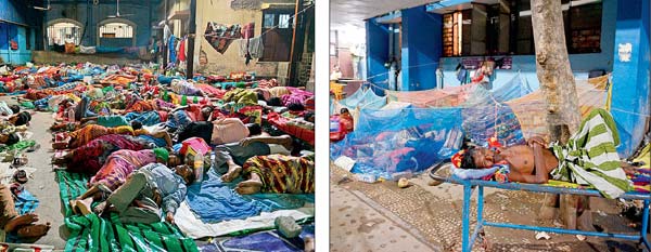 কে রোগীর আত্মীয় আর কে বহিরাগত তা বোঝা যাবে কী ভাবে? প্রশ্ন করতেই এক নিরাপত্তারক্ষী ঠোঁট ওল্টালেন। হাসপাতালের অন্যান্য বিল্ডিংয়ের নীচেও গাদাগাদি করে শুয়ে রয়েছেন বহু মানুষ। প্রতীক্ষালয়ে ঠাঁই হয়নি তাঁদেরও। অভিযোগ করলেন, রাতে হাসপাতাল চত্বরে নেশার আসর বসে। মেয়েদের শৌচালয়ে যাওয়ার দরকার হলেও ভোর পর্যন্ত অপেক্ষা করতে হয়।