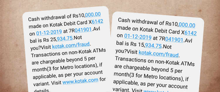 একটি বেসরকারি সংস্থার কর্মী পিয়ালি ভট্টাচার্য যাদবপুর থানায় করা অভিযোগে জানিয়েছেন, একটি রাষ্ট্রায়ত্ত ব্যাঙ্কে তাঁর বেতনের অ্যাকাউন্ট। সেই অ্যাকাউন্টে ৬৭ হাজার টাকা ছিল। রবিবার সকালে পর পর তিনি দু’টি মেসেজ পান। ২০ হাজার টাকা করে পর পর দু’বার তাঁর অ্যাকাউন্ট থেকে তোলা হয়েছে। ওই মেসেজ দেখে ঘাবড়ে যাওয়া পিয়ালি এটিএমে গিয়ে অ্যাকাউন্ট ব্যালান্স দেখেন। কিন্তু, অ্যাকাউন্টে কোনও টাকা ছিল না। তাড়াহুড়ো করে যাদবপুর থানায় অভিযোগ জানাতে যান তিনি। কিন্তু তার আগেই পর পর টাকা ‘ডেবিট’ হওয়ার মেসেজ ঢোকে তাঁর মোবাইলে। ফলে মোট ৬৭ হাজার টাকা তাঁর অ্যাকাউন্ট থেকে তুলে নিয়েছে প্রতারকরা।
