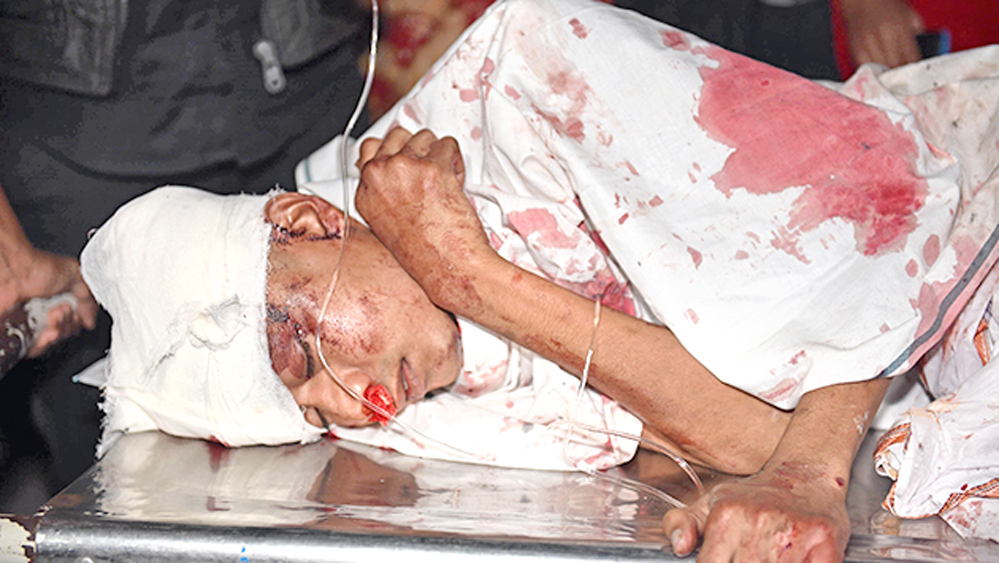 ন্যাশনাল মেডিক্যাল কলেজ হাসপাতালে ভর্তি ছিলেন আহত রণজিৎ রায়। ছবি: রণজিৎ নন্দী