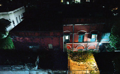 মাঝ রাতে রবিনসন স্ট্রিটে পার্থ দে-র বাড়ি। ছবি: প্রদীপ আদক।