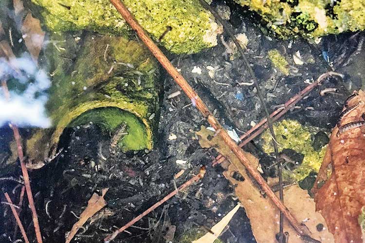 পড়ে থাকা আবর্জনায় জল জমে জন্মাচ্ছে লার্ভা। —নিজস্ব চিত্র।