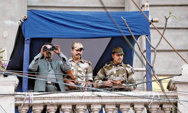 পার্ক স্ট্রিটে পুলিশের নজরদারি।ছবি: রণজিৎ নন্দী।