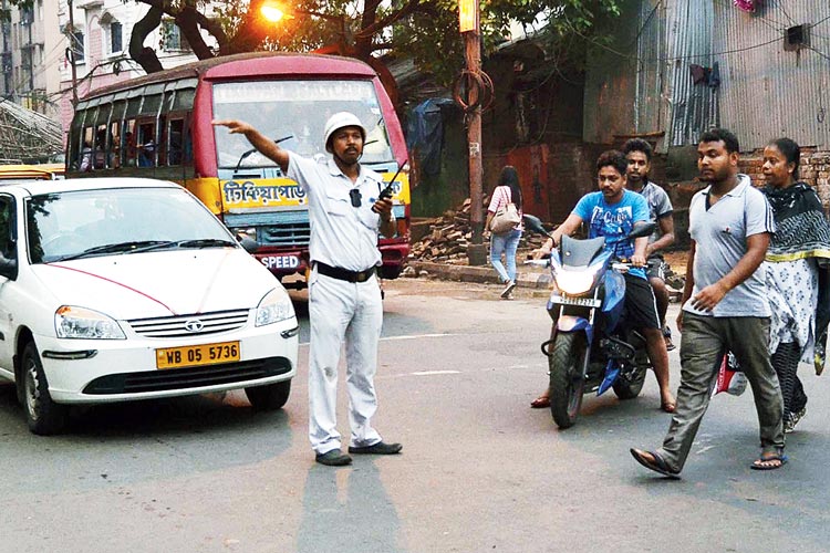 দুর্ঘটনার পরের দিনও চেতনা ফেরেনি। পুলিশের সামনেই বিনা হেলমেটে যাতায়াত। মঙ্গলবার, উল্টোডাঙা মেন রোডে।