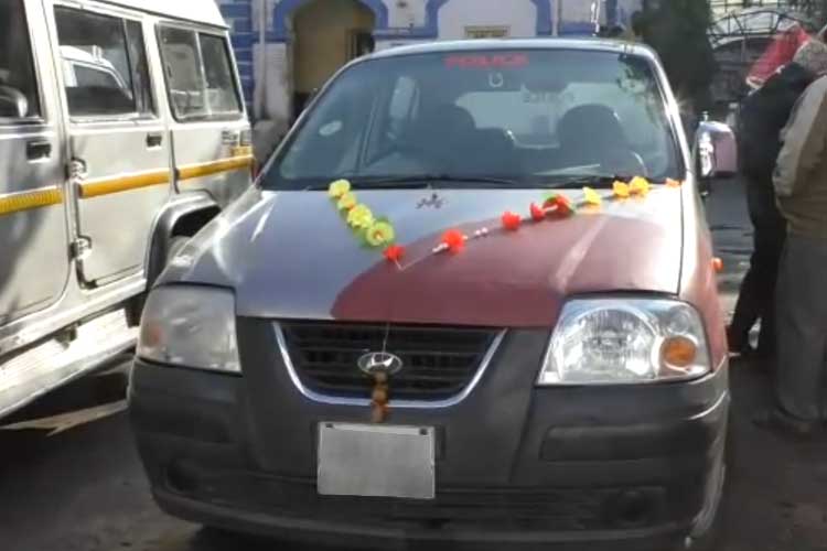 পুলিশ লেখা এই গাড়িটিই ব্যবহার করে তোলা আদায় করছিল ওই চার যুবক।