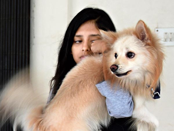 বাড়ির লোকের সঙ্গে পোষ্য রসি। শনিবার।