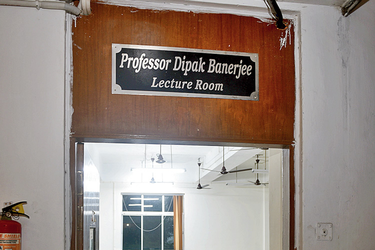 প্রেসিডেন্সি বিশ্ববিদ্যালয়ে অভিজিৎবাবুর বাবা দীপক বন্দ্যোপাধ্যায়ের নামাঙ্কিত লেকচার রুম। নিজস্ব চিত্র