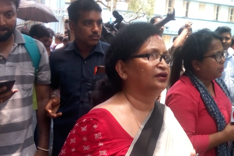 হাসপাতালে বিক্ষোভের মুখে পড়েন চন্দ্রিমা ভট্টাচার্য। —নিজস্ব চিত্র।