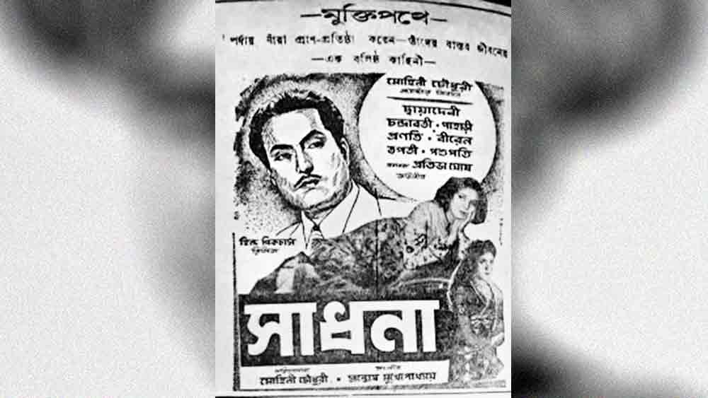যিনি লিখেছেন মুক্তির মন্দির সোপানতলে কত প্রাণ হল বলিদান, তিনিই আবার লিখেছেন পৃথিবী আমারে চায়/ রেখো না বেঁধে আমায়। যাঁর হাতে রূপ পেয়েছে আমি দুরন্ত বৈশাখী ঝড়, তিনিই লেখেন শুনি টাকডুম টাকডুম বাজে... বাংলা গানের এই বহুবিস্তারী কলমটির নাম মোহিনী চৌধুরী (১৯২০-১৯৮৭)। তিনি লেখক, চলচ্চিত্র প্রযোজক, পরিচালকও, ১৯৫৬ সালে নিজেরই কাহিনিতে বানিয়েছিলেন ছবি সাধনা (ছবিতে পোস্টার)। বিজ্ঞানী, লোকসভার সদস্য মেঘনাদ সাহার সংসদীয় সচিবও ছিলেন। তবু সব পরিচিতি ছাপিয়ে তাঁর গীতিকার সত্তাই মানুষ ভালবেসেছেন বেশি; তাঁর লেখা গানেই প্রথম রেকর্ড গীতা দত্ত থেকে শ্যামল মিত্র, রামকুমার চট্টোপাধ্যায়ের। গত বছর জন্মশতবর্ষ পেরিয়েছে, ১০১তম বর্ষে তাঁর পরিবারের সদস্যরা সম্প্রতি প্রকাশ করেছেন তাঁর লেখা ১০১টি গানের সঙ্কলন মোহিনী চৌধুরী ১০১: গানে গানে (সঙ্কলন ও সম্পাদনা: ঋতুপর্ণা সেন, উৎসব চৌধুরী)। বাংলা গানের ইতিহাসে মোহিনী চৌধুরীর অবদান নিয়ে লিখেছেন বর্ষীয়ান সুরকার অভিজিৎ বন্দ্যোপাধ্যায়।