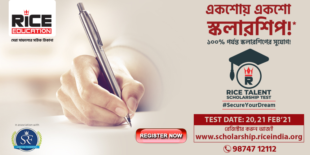 স্কলারশিপ পরীক্ষায় প্রাপ্ত স্কোরের ভিত্তিতে ১০০ শতাংশ পর্যন্ত বৃত্তি পেতে পারবে শিক্ষার্থীরা। ১০০০-এরও বেশি শিক্ষার্থীদের স্কলারশিপ দেওয়া হবে। গোটা বাংলা জুড়ে ছাত্র-ছাত্রীদের ১ কোটি টাকার স্কলারশিপ দেবে রাইস ও এসআরএফ।