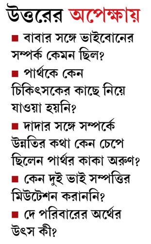 পাভলভের চিকিৎসকরা বলছেন, পার্থের উপরে নজর রাখা, কথা বলার পাশাপাশি ওঁর ঘনিষ্ঠদের সঙ্গেও কথা বলার প্রয়োজন রয়েছে। কারণ এ সব ক্ষেত্রে অসুখের ধরনটা বোঝার জন্য রোগীর অতীতটা জানা জরুরি। পার্থর বয়ঃসন্ধির সময়টা কেমন ছিল, সেটা জানতে হবে। ‘‘বয়ঃসন্ধিতেই হয়তো লুকিয়ে রয়েছে রহস্যের বীজ,’’ বলছেন এক চিকিৎসক। দীর্ঘদিন ধরে বাড়িতে নোংরা পরিবেশে থাকার ফলে পার্থর শরীরে চর্মরোগ দেখা দিয়েছে। নানা জায়গা থেকে রক্তও ঝরছে। দিন কয়েকের মধ্যেই পাভলভে এক জন চর্মরোগ বিশেষজ্ঞকে এনে পার্থর চিকিৎসা করানোর কথা ভাবা হচ্ছে।