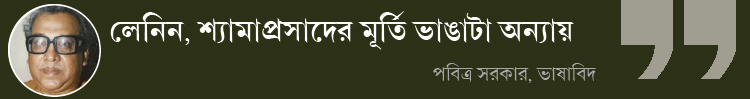 “মূর্তি ভাঙার বিষয়টাই অত্যন্ত খারাপ। লেনিনের মূর্তি ভাঙা অন্যায়, শ্যামাপ্রসাদের মূর্তি ভাঙাটাও অন্যায়। এটা তো রাজনৈতিক কারণে বসানো হয়নি। কেওড়াতলা মহাশ্মশানে শ্যামাপ্রসাদের স্মৃতিচিহ্ন হিসেবে এটি বসানো হয়েছিল। আজকের ঘটনায় প্রতিবাদ করলেও শাসক দলের মধ্যে স্ববিরোধ রয়েছে। কলকাতায় মূর্তি ভাঙাকে জঙ্গি প্রতিবাদের নমুনা হিসেবে দেখি না। তবে মূর্তি ভাঙাটা অপমানজনক তো বটেই।”