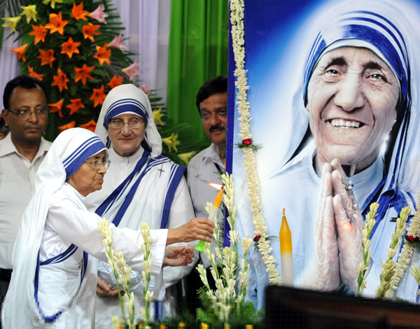 মাদারের প্রতি শ্রদ্ধায় সিস্টার নির্মলা।—ফাইল চিত্র।