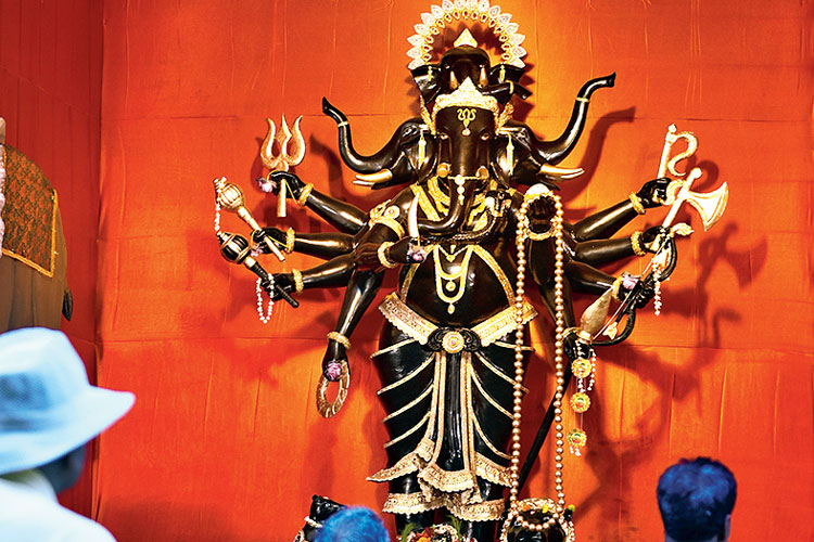 মুখ্যমন্ত্রী মমতা বন্দ্যোপাধ্যায় থেকে শুরু করে বাংলার নেতাদের গণেশ-প্রীতি তো জলভাত। দুর্গাপুজোর প্রাক্কালে বিভিন্ন পুজো কমিটির কর্তারাও গণেশপুজোর শুভেচ্ছা পাঠাচ্ছেন। আগে রথ, জন্মাষ্টমী মায় বিশ্বকর্মা পুজো ঘিরে বাঙালির উন্মাদনা দেখা যেত। এখন গণেশপুজোই যেন দুর্গাপুজোর আগমনি। লালবাজারের কর্তারা জানাচ্ছেন, রবিবার রাত থেকেই মণ্ডপে মণ্ডপে ঠাকুর আসা উপলক্ষে শহর জুড়ে যানজটের শুরু। বাগুইআটি থেকে বেহালাই হোক বা শ্যামবাজার থেকে গড়িয়া—নানা মাপের বড়-মেজ গণেশ-বাবার ছড়াছড়ি। দক্ষিণ কলকাতার একটি নামী দুর্গাপুজোর কর্তার কাছে ইদানীং যেন গণেশই প্রধান উপাস্য। বছর দু’-তিন ধরে মুম্বই থেকে ঠাকুরের নকশা করাচ্ছিলেন তিনি। এ বার কালো রঙের অতিকায় গণেশকে সোনার গয়নায় সাজিয়ে কলকাতাতেই যাবতীয় আয়োজন সেরেছেন।