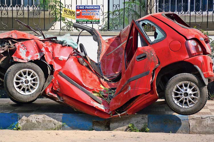 ইস্টার্ন মেট্রোপলিটন বাইপাসের বিভিন্ন জায়গায় বসেছে স্পিড মিটার। গাড়ির সর্বোচ্চ গতি কত হবে, তা-ও লেখা আছে বাইপাসের বিভিন্ন জায়গায়। ট্র্যাফিক পুলিশের দাবি, দিনভর বাইপাসে টহলদারিও চলে। ওই রাস্তায় বেঁধে দেওয়া গতির থেকে জোরে গাড়ি চললেই চালককে ধরে জরিমানা করে পুলিশ। তবু বাইপাসের গতি যে এখনও লাগামছাড়া, তা ফের প্রমাণিত হল রবিবার রাতে। পুলিশ জানিয়েছে, রাত বারোটা নাগাদ বাইপাসের পাটুলি মোড় থেকে ঘোষপাড়া পেরিয়ে বাঘা যতীন উড়ালপুলের ঠিক আগে একটি গাড়ি প্রচণ্ড জোরে ডিভাইডারের রেলিংয়ে ধাক্কা মারে। ধাক্কার অভিঘাত এতটাই বেশি ছিল যে, গাড়িটি রেলিংয়ে ধাক্কা মেরে প্রায় ছ’ফুট উঠে গিয়ে পাশে একটি গাছে গিয়ে ফের ধাক্কা দেয়। ঘটনাস্থলেই গাড়ির চালক সুমন্ত চৌধুরীর (৪৮) মৃত্যু হয়েছে। সুমন্তবাবুর বাড়ি সার্ভে পার্ক থানা এলাকার সন্তোষপুরের সাউথ পার্কে। পুলিশের অনুমান, তাঁর গাড়ির গতি ছিল ঘণ্টায় একশো কিলোমিটারের বেশি।