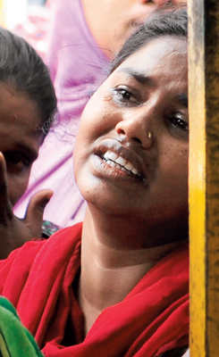 সন্তানহারা। সোমবার আর জি করে আদিত্য-অর্জুনের মা। সুদীপ্ত ভৌমিকের তোলা ছবি।