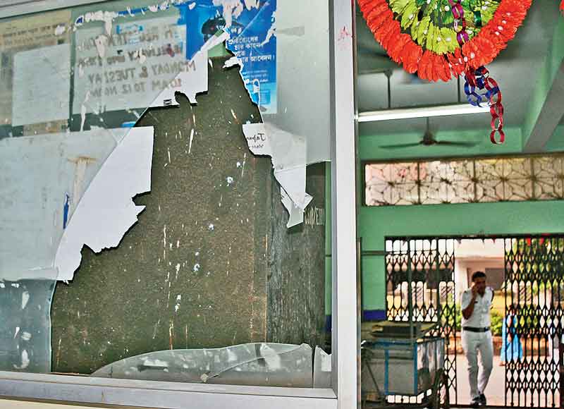 ভাঙচুরের পর পুর স্বাস্থ্যকেন্দ্র। বৃহস্পতিবার, কুষ্টিয়ায়। নিজস্ব চিত্র