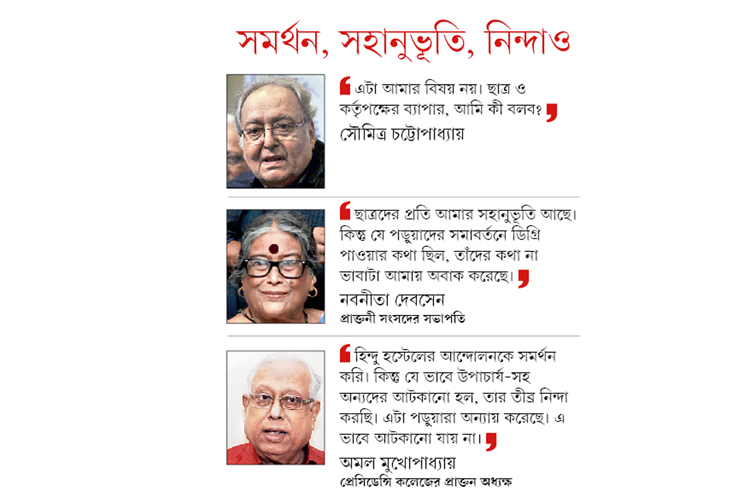 ছাত্রনেতা সায়ন চক্রবর্তী বলেন, ‘‘সমাবর্তন আমাদের নিশানা নয়। অনির্দিষ্ট কাল ক্যাম্পাস অবরুদ্ধ করে রাখাও আমাদের উদ্দেশ্য নয়। আমরা চাই হিন্দু হস্টেল। সেটাই ফিরিয়ে দেওয়া হোক।’’ কর্তৃপক্ষ জানান, পূর্ত দফতর সংস্কারের কাজ শেষ করলে তবেই হস্টেল ফিরিয়ে দেওয়া সম্ভব। পড়ুয়াদের অভিযোগ, তিন বছর ধরে সংস্কার চলছে। কর্তৃপক্ষের সদিচ্ছার অভাবেই কাজ শেষ হচ্ছে না। ক্যাম্পাসে দিনরাত পড়ে থাকায় কয়েক জন পড়ুয়ার ম্যালেরিয়া এবং ভাইরাল জ্বর হয়েছে। তাঁদের দাবি, হিন্দু হস্টেলের একটি অংশ তো প্রায় প্রস্তুত হয়ে গিয়েছে। সেখানে অন্তত থাকতে দেওয়া হোক।