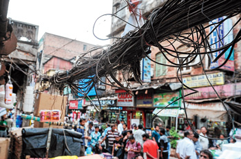 বিজ্ঞাপনে শহরের মুখ ঢাকা নতুন কিছু নয়। এ বার শহর জুড়ে থাকা বাতিস্তম্ভে তারের জট ভাঁজ ফেলেছে প্রশাসনের কপালে। এর কোনওটা কেব্ল অপারেটরের তার, কোনওটা টিভি-টেলিফোনের তার, কোনওটা আবার বৈদ্যুতিক তার।