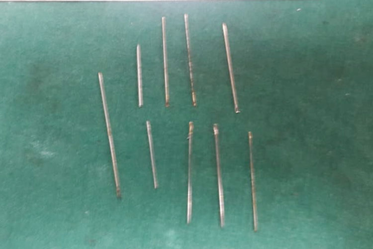একটি গলার পেছনের দিকে। বাকি আটটি সূচ গলার সামনে দিকে খাদ্যনালীর চারপাশে বিঁধে রয়েছে। এক্স-রে রিপোর্টে এই ছবি ধরা পড়তেই আঁতকে উঠেছিলেন কৃষ্ণনগর হাসপাতালের চিকিৎসকেরা।