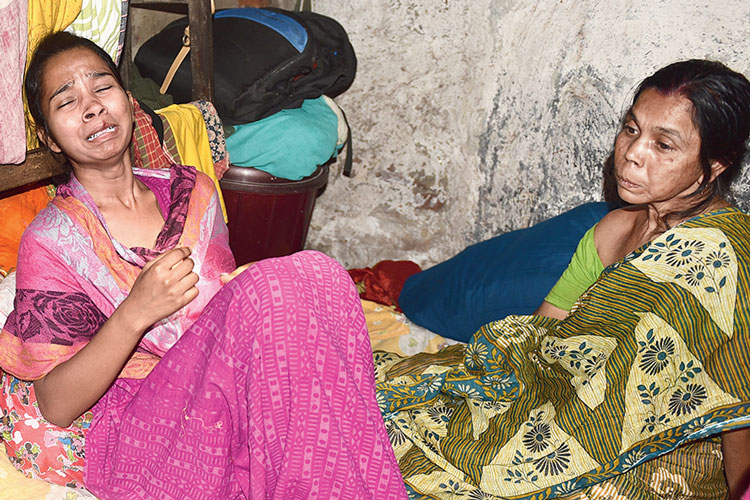 শোকাহত: পিউ বিশ্বাসের মৃত্যুর পরে ভেঙে পড়েছেন তার পরিজনেরা। শনিবার, বেলেঘাটায়। নিজস্ব চিত্র