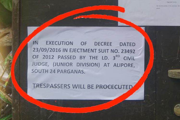 ‘সুন্দরম’-এর জিনিসপত্রের উপর সাঁটানো আদালতের নোটিশ।
