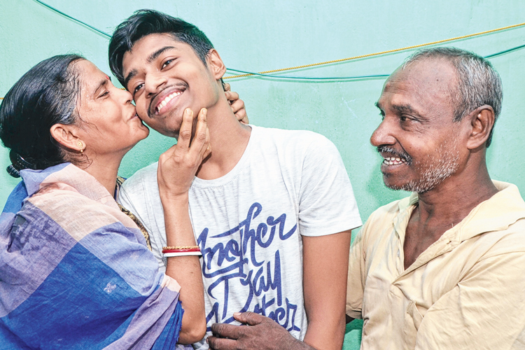 বাবা-মায়ের সঙ্গে বিশ্বজিৎ দত্ত। শুক্রবার, বাগুইআটিতে।