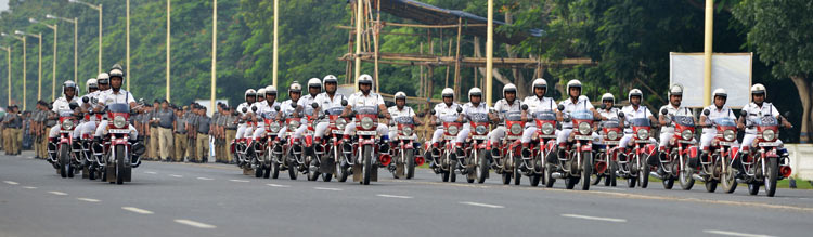 স্বাধীনতা দিবসের কুচকাওয়াজের মহড়ায় পুলিশকর্মীরা।—নিজস্ব চিত্র।