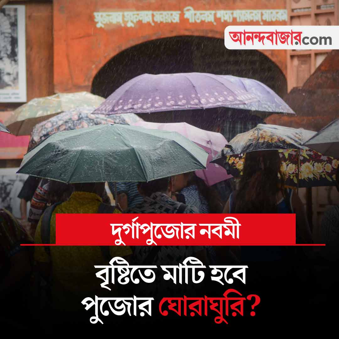 ষষ্ঠী এবং সপ্তমীতে বৃষ্টি-অসুরের দেখা না মিললেও, রেহাই পায়নি অষ্টমী। বেলার দিকে বিক্ষিপ্ত বৃষ্টি হয়েছে কলকাতায়। রাতের দিকেও বৃষ্টি হয়েছে। নবমীতে বৃষ্টির পূর্বাভাস রয়েছে। আলিপুর আবহাওয়া দফতর জানিয়েছে, নবমী এবং দশমীতে শহরে বৃষ্টির পরিমাণ বাড়তে পারে। শুধু কলকাতাই নয়, দক্ষিণবঙ্গের বাকি জেলাগুলিতেও বৃষ্টির পূর্বাভাস রয়েছে। ফলে, নবমীতে ঠাকুর দেখতে মণ্ডপে মণ্ডপে টহল দেবেন যাঁরা, সতর্ক থাকতে হবে তাঁদের।