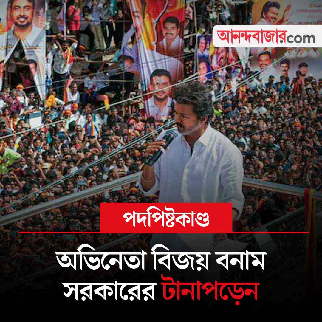 তামিলনাড়ুতে পদপিষ্টকাণ্ডে অভিনেতা বিজয় ও এমকে স্ট্যালিন সরকারের টানাপড়েন তুঙ্গে। ইতিমধ্যেই বিজয়ের দলের এক নেতাকে গ্রেফতার করেছে সরকার। এই আবহে বিজয়কেও গ্রেফতার করা হতে পারে বলে জল্পনা। তা নিয়ে গতকাল বার্তা দিয়েছেন অভিনেতা। তিনি বলেছেন, ‘‘আপনার যদি প্রতিশোধ নেওয়ার পরিকল্পনা থাকে, যা ইচ্ছে আমার সঙ্গে করুন। কিন্তু আমার নেতাদের গায়ে হাত দেবেন না। আমি বাড়িতে বা অফিসে আছি।’’ ঘটনার জল কোন দিকে গড়ায় নজর থাকবে আমাদের।