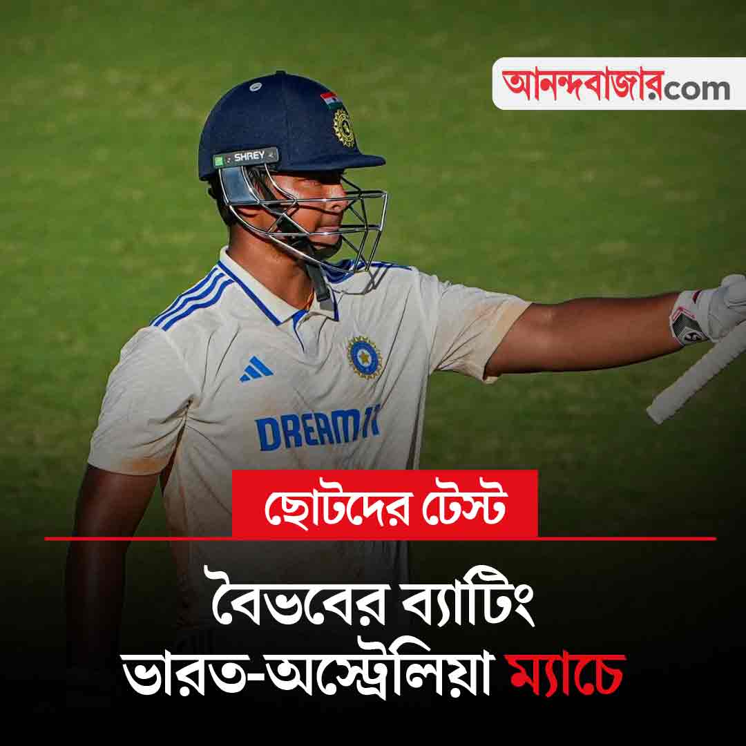 আজ থেকে শুরু হচ্ছে বৈভব সূর্যবংশীদের টেস্ট ক্রিকেট। ভারতের অনূর্ধ্ব ১৯ দল মুখোমুখি অস্ট্রেলিয়া অনূর্ধ্ব ১৯ দলের। চার দিনের ম্যাচ। মোট দুই টেস্টের সিরিজ়। এর আগে তিনটি এক দিনের ম্যাচের সবকটিতেই জিতেছে বৈভবরা। টেস্টে কী হবে? খেলা শুরু ভোর ৫:৩০ থেকে। খেলা দেখা যাবে স্টার স্পোর্টস চ্যানেল ও জিয়োহটস্টার অ্যাপে।