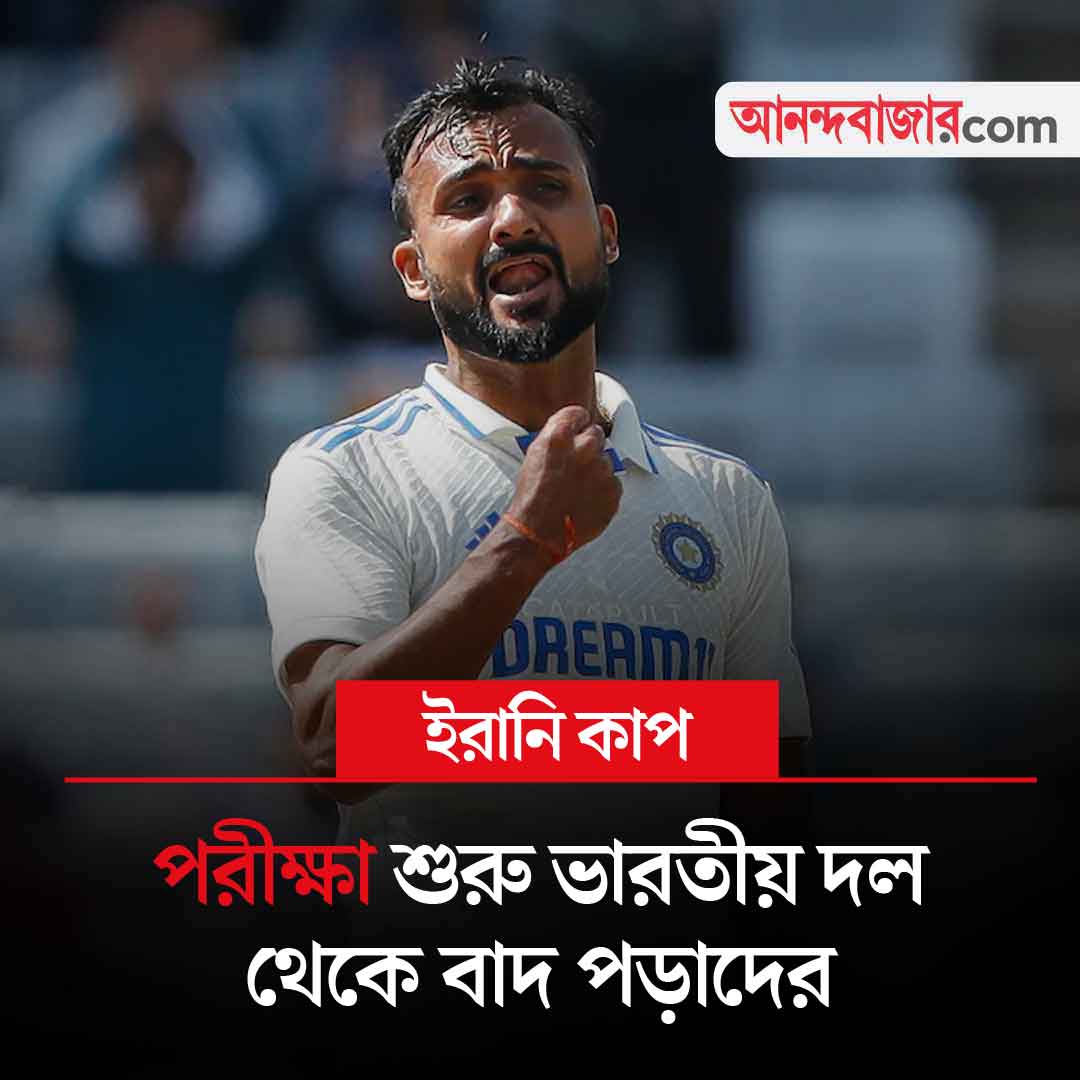 ভারতীয় দল থেকে বাদ পড়াদের আজ থেকে নতুন পরীক্ষা। ইরানি কাপে অবশিষ্ট ভারতের হয়েi খেলবেন অভিমন্যু ঈশ্বরণ, আকাশদীপ, রজত পটীদার, রুতুরাজ গায়কোয়াড়। বিপক্ষে রঞ্জি চ্যাম্পিয়ন বিদর্ভ। খেলা শুরু সকাল ৯:৩০ থেকে।