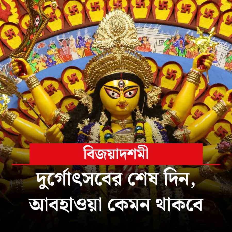 বৃষ্টির আশঙ্কা থাকলেও মোটের উপর ভালয় ভালয় কেটে গিয়েছে উৎসবের কয়েক দিন। নবমীর মাঝরাত থেকে বৃষ্টির আশঙ্কা ছিল। হাওয়া অফিসের পূর্বাভাস, দশমী থেকে ভাসতে পারে কলকাতা। কারণ, পশ্চিম-মধ্য বঙ্গোপসাগরের উপর অবস্থিত নিম্নচাপ। বুধবার মধ্যরাতেই গভীর নিম্নচাপে পরিণত হয়েছে সেটি। ২ অক্টোবর, দশমীর রাত থেকে ৩ অক্টোবর একাদশীর ভোরের মধ্যে গোপালপুর ও পারাদ্বীপের মধ্য দিয়ে ওড়িশা এবং সংলগ্ন অন্ধ্রপ্রদেশ উপকূল অতিক্রম করতে পারে। এর প্রভাব পড়তে পারে দক্ষিণবঙ্গের জেলাগুলিতে। বিশেষত কলকাতা, দুই মেদিনীপুর, উত্তর ২৪ পরগনা এবং হাওড়ায় মাঝারি বৃষ্টির পূর্বাভাস থাকছে। তবে হাওয়া অফিসের সাম্প্রতিক বুলেটিনের দিকে নজর থাকবে।