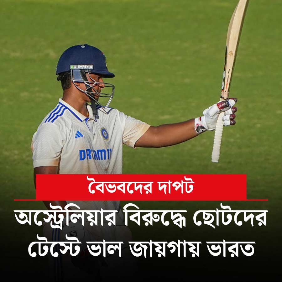 চলছে ভারত এবং অস্ট্রেলিয়ার ছোটদের টেস্ট। বৈভব সূর্যবংশী-বেদান্ত ত্রিবেদীর দাপটে দারুণ জায়গায় ভারতের অনূর্ধ্ব ১৯ দল। তারা প্রথম ইনিংসে ১৮৫ রানে লিড নিয়েছে। দ্বিতীয় ইনিংসে অস্ট্রেলিয়ার অনূর্ধ্ব ১৯ দল ৮ রান তুলতেই ১ উইকেট হারিয়েছে। চার দিনের টেস্টে আজ তৃতীয় দিনের খেলা। ভোর ৫:৩০ থেকে খেলা শুরু। খেলা দেখা যাবে স্টার স্পোর্টস চ্যানেল ও জিয়োহটস্টার অ্যাপে।