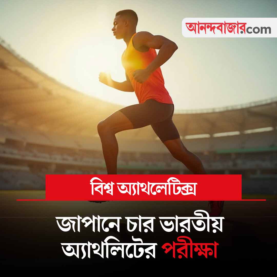 বিশ্ব অ্যাথলেটিক্স আজ তৃতীয় দিনে পড়ছে। জাপানের টোকিয়োয় হচ্ছে প্রতিযোগিতা। আজ চার ভারতীয়ের ইভেন্ট রয়েছে। ভোর ৫:৪৫-এ মহিলাদের ৩,০০০ মিটার স্টিপলচেজ়ে নামছেন পারুল চৌধুরি ও অঙ্কিতা ধ্যানি। পুরুষদের লং জাম্পের যোগ্যতা অর্জন পর্বে নামছেন মুরলি শ্রীশঙ্কর। তাঁর ইভেন্ট বিকেল ৪:১০-এ। বিকেল ৪:৫০-এ ১১০ মিটার হার্ডলসে নামবেন তেজস শিরসে।