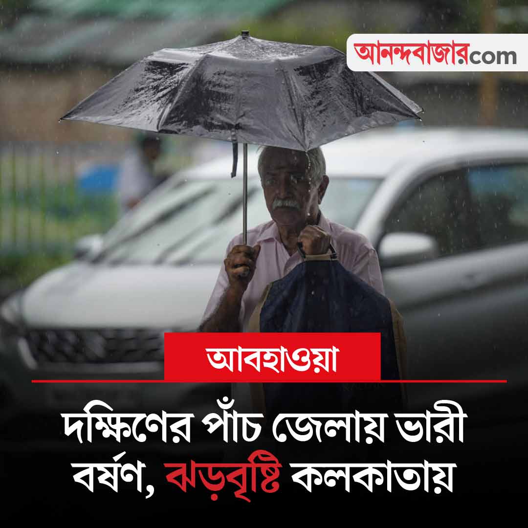 আজ কলকাতা-সহ দক্ষিণবঙ্গের সব জেলায় বিক্ষিপ্ত ভাবে হালকা থেকে মাঝারি বৃষ্টির জন্য হলুদ সতর্কতা জারি করা হয়েছে। পুরুলিয়া, বাঁকুড়া, পশ্চিম বর্ধমান, বীরভূম, মুর্শিদাবাদে হতে পারে ভারী (৭ থেকে ১১ সেন্টিমিটার) বৃষ্টি। ওই জেলাগুলিতে ঘণ্টায় ৩০ থেকে ৪০ কিলোমিটার গতিতে দমকা ঝোড়ো হাওয়া বইতে পারে। দার্জিলিং, জলপাইগুড়ি, কালিম্পং, আলিপুরদুয়ার, কোচবিহার— এই পাঁচ জেলায় চলবে ভারী বৃষ্টি। সেখানে জারি করা হয়েছে হলুদ সতর্কতা। এর মধ্যে আজ জলপাইগুড়ি এবং আলিপুরদুয়ারে ভারী থেকে অতি ভারী (৭ থেকে ২০ সেন্টিমিটার) বৃষ্টি হতে পারে। সেখানে জারি কমলা সতর্কতা ।