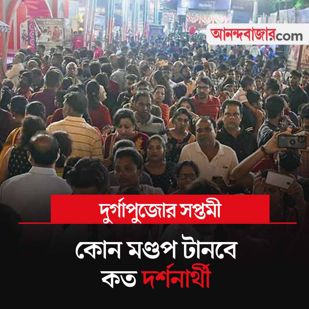 তৃতীয়া থেকেই কলকাতার বিভিন্ন দুর্গাপুজো মণ্ডপে একটু একটু করে ভিড় জমতে শুরু করেছে। ষষ্ঠীর রাতেও তার অন্যথা হয়নি। কলকাতার উত্তর থেকে দক্ষিণ, সর্বত্র ভিড় ছিল চোখে পড়ার মতো। বিশেষত, শ্রীভূমি, সুরুচি সংঘ, সন্তোষ মিত্র স্কোয়্যার, কিংবা চেতলা অগ্রণীতে মাত্রা ছাড়িয়েছে ভিড়। আজ, সপ্তমীতে সেই ভিড় আরও বাড়বে বলেই নিশ্চিত পুজোকর্তারা। জনজোয়ারের সঙ্গে বাড়তে পারে যানজটও। আজ সকাল থেকে কোন মণ্ডপে কেমন ভিড় হচ্ছে, দিনভর নজর থাকবে সেই সংক্রান্ত খবরে।