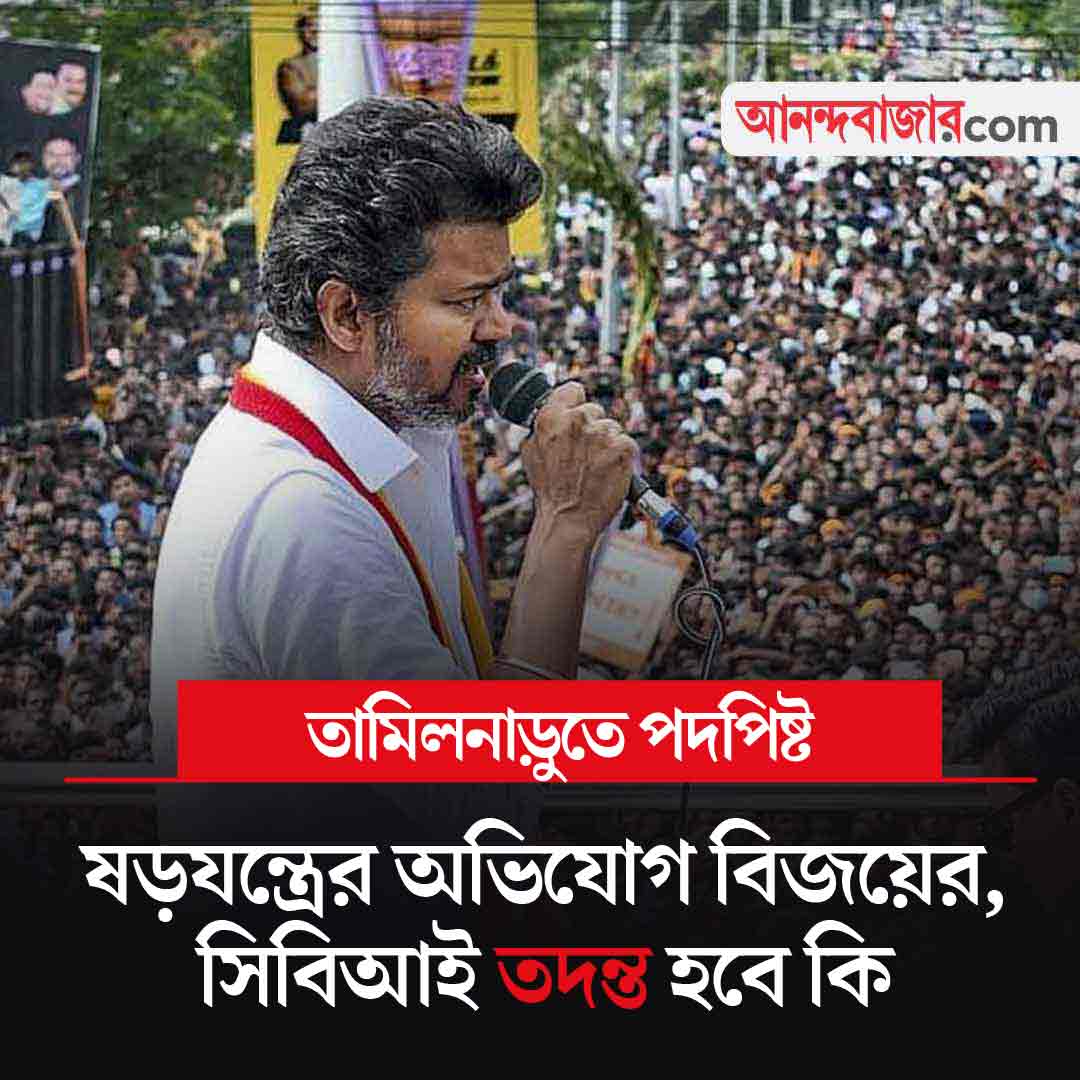 তামিলনাড়ুর করুরে পদপিষ্টের ঘটনায় ১০ শিশু-সহ ৩৯ জনের মৃত্যুর খবর মিলেছে। আহত শতাধিক। গাফিলতি কার, তা নিয়ে টানাপড়েনের মধ্যে নানা তত্ত্ব উঠে আসছে। সভার আয়োজকদের এই ঘটনার জন্য পরোক্ষে ‘দায়ী’ করেছে পুলিশ। অন্য দিকে, তামিলাগা ভেটরি কাজ়াগম (টিভিকে)-এর প্রতিষ্ঠাতা নেতা তথা অভিনেতা ‘থলপতি’ বিজয় এই ঘটনার নেপথ্যে ষড়যন্ত্র’ দেখছেন। তাঁর দল টিভিকে-র তরফে অভিযোগ তোলা হয়েছে, করুরের ঘটনা কোনও দুর্ঘটনা নয়, ষড়যন্ত্রের ফল। সভায় পাথর ছোড়া এবং পুলিশের লাঠিচার্জকেও এর জন্য দায়ী করেছে টিভিকে। ষড়যন্ত্রের অভিযোগ তুলে মাদ্রাজ হাই কোর্টের দ্বারস্থ হয়েছে তারা।